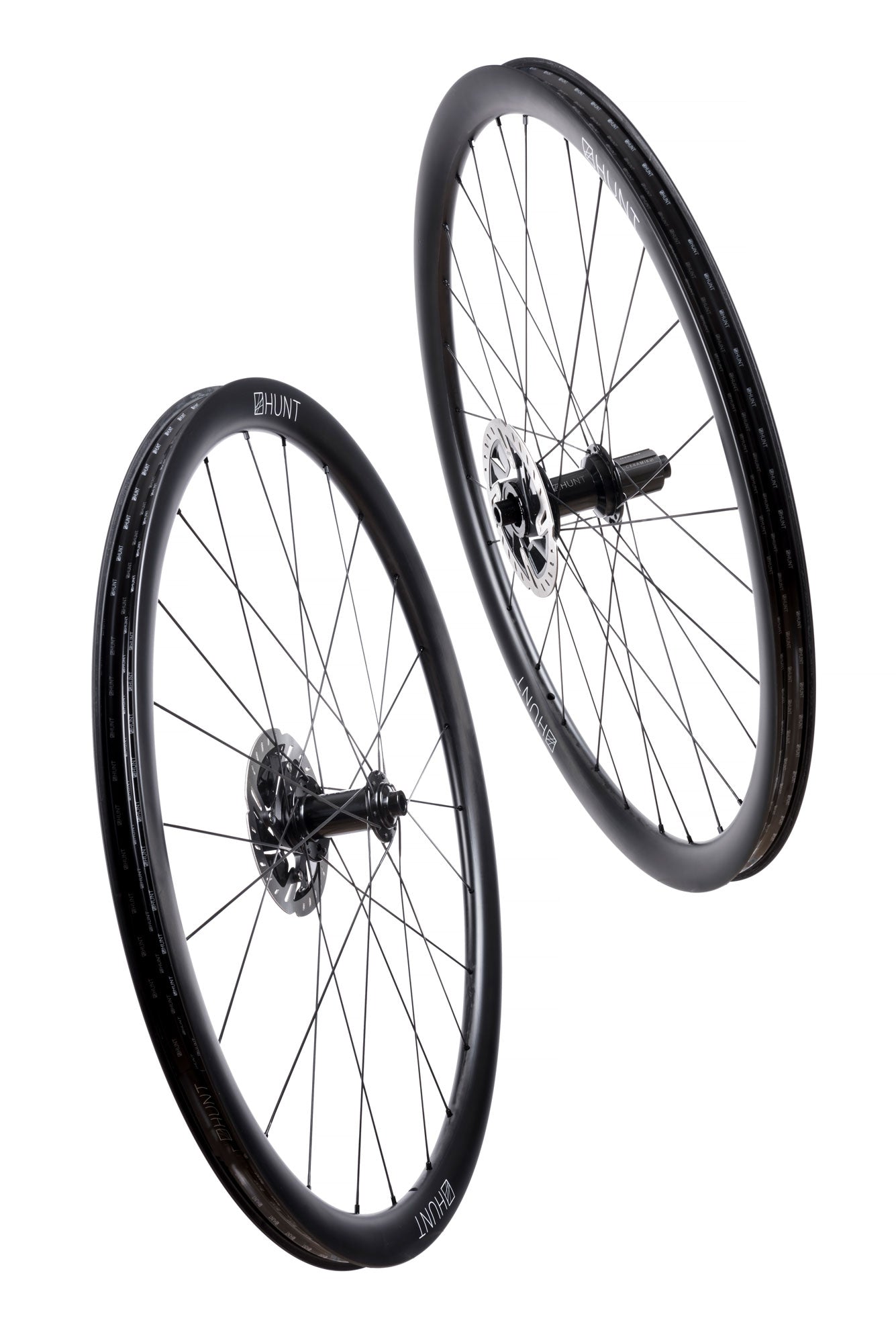 Rear Hub7075-T6 heat-treated aluminum alloy freehub body. H_CERAMIK freehub body reinforcement coating provides excellent durability and protects against cassette sprocket damage to the freehub often seen on standard alloy freehub bodies. 6 pawl, 36 tooth RapidEngage freehub, with an engagement angle of just 5 degrees All freehub standards accounted for. Hunt Race Season Disc straight-pull super-light alloy. Forged and CNC’d 6061-T6 heat treated aluminum alloy body. 7075-T6 aluminum alloy axles. Center-lock disc mount. If you require a 6 bolt adaptor you can purchase separately here. Polished anodized black finish with laser graphics